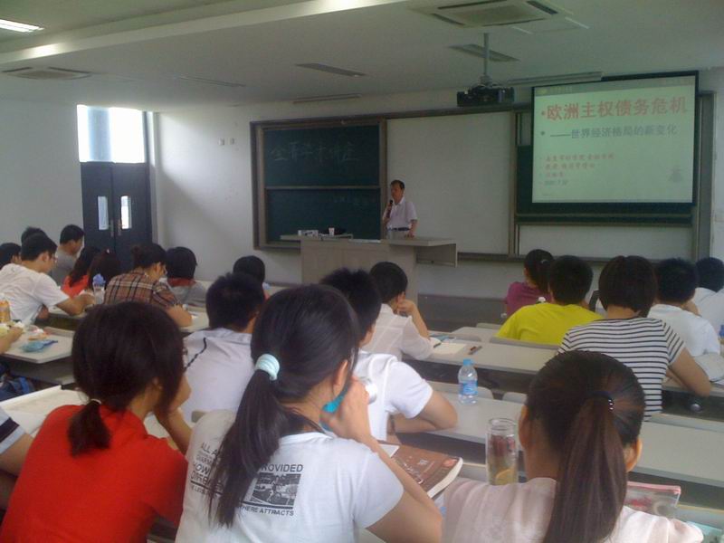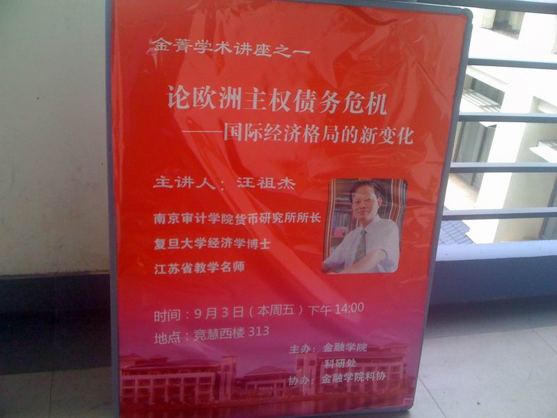 2010 年9月3日,由白菜论坛 科研处主办,科协协办的金菁学术讲座在竞慧西楼313教室热烈举行。此次讲座由复旦大学经济学博士,江苏省教学名师,金融院汪祖杰教授主讲。