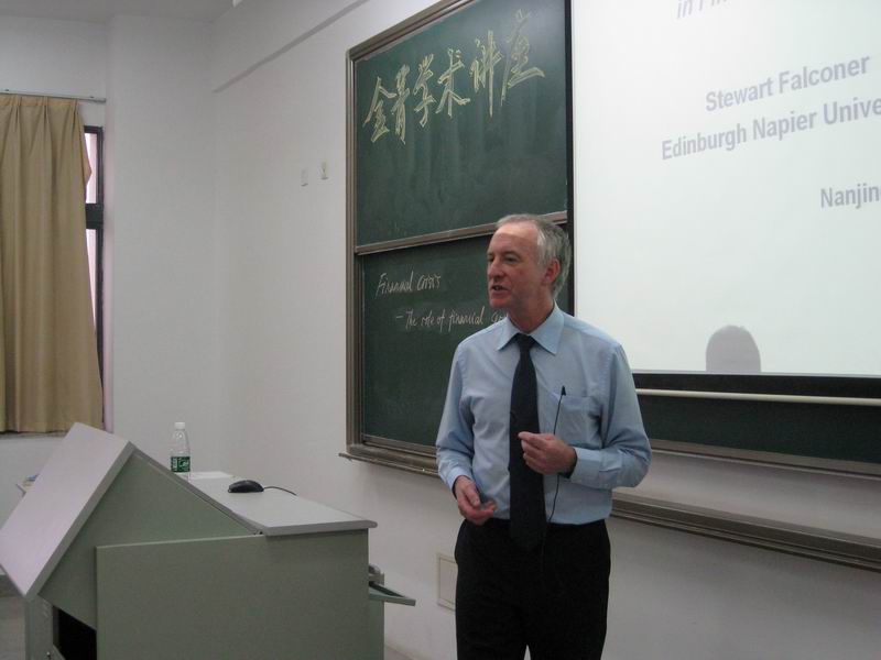 Stewart Falconer教授首先以一段精彩诙谐的开场白引出了全场讲座的主题,他从对金融服务业的介绍、现状、信用和专业化的重要性以及金融服务业的积极作用四方面系统地阐述分析了自己的观点与看法。同学们也十分踊跃地与教授进行互动,用流利的英文向他提出自己的疑问,Stewart Falconer教授一一做了解答。