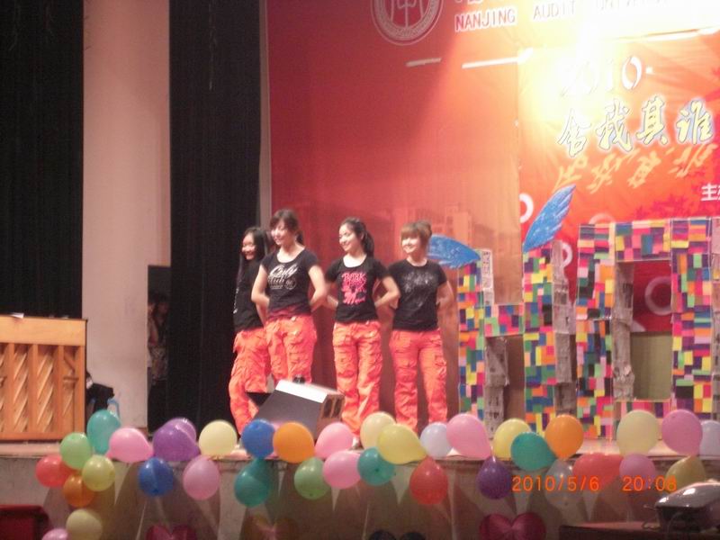 经过初赛、复赛的激烈角逐,共有六支队伍闯入决赛,他们分别是泽17-203《爱的翅膀》,润7-304《GHOST》,泽19-304《梁祝》,润7-306《双节棍》,澄5-603《爱之初体验》,泽1-603《仙履情缘》。灯光闪烁,掌声迭起,舞台上的内容不停地变幻,青春的张扬与朝气充满了舞台,有杰克逊版的帅气男生,有尽显安静与美丽的女生,有在面具遮掩下的一张张神秘的脸,有双节棍带来的霸气与刺激……每支队伍都拿出了看家本领,真是难分伯仲。