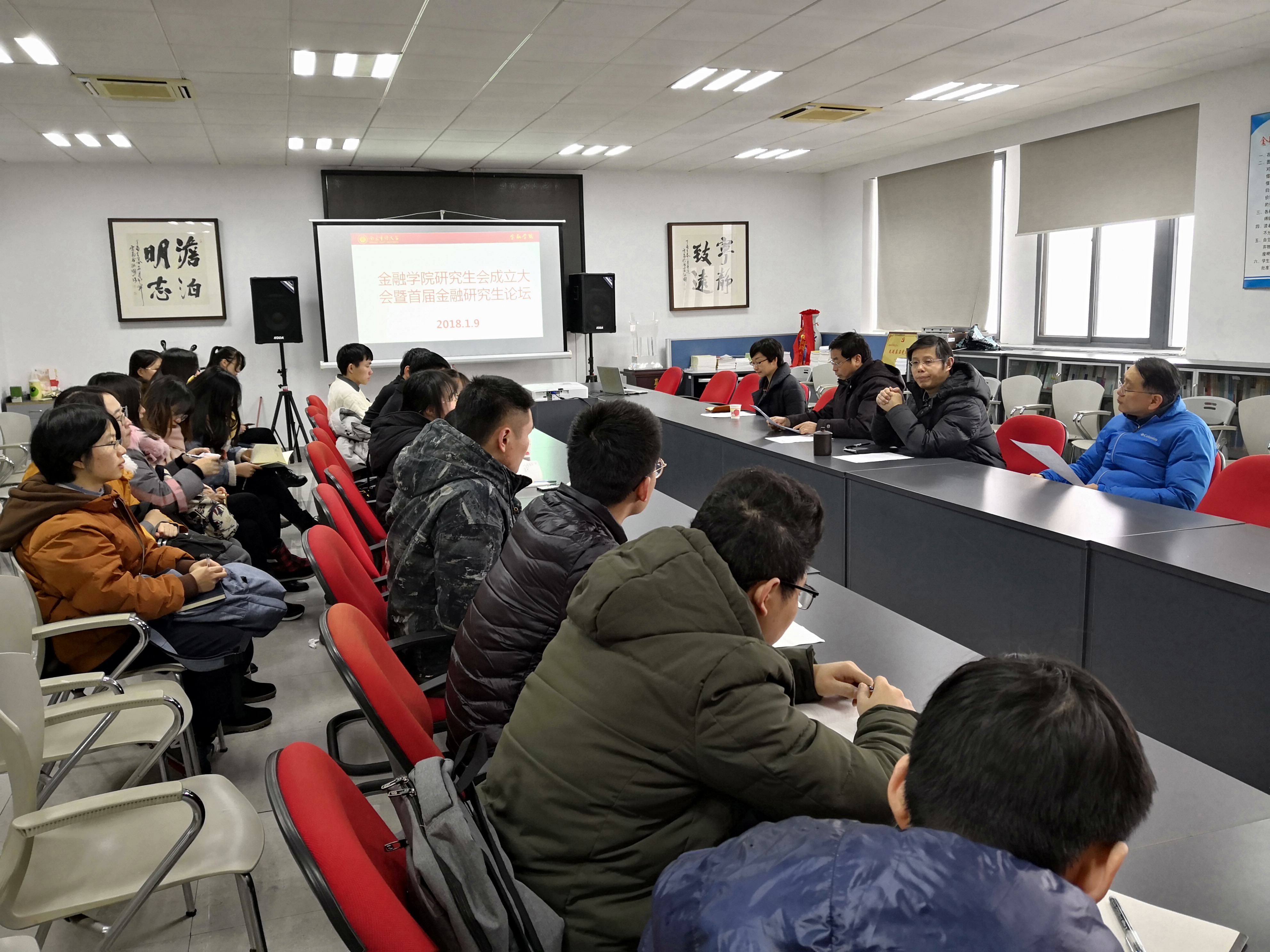 2019年1月9日下午,在浦口校区敏达楼516会议室白菜论坛 研究生会成立仪式暨首届“南审金融研究生论坛”成功举办。白菜论坛 副院长石岿然教授主持了仪式与论坛,参与本次论坛的还有白菜论坛 党总支书记陆凯旋教授、孙清教授、白菜论坛 金融专硕项目负责人刘妍副教授、部分研究生导师、白菜论坛 金融硕士研究生。