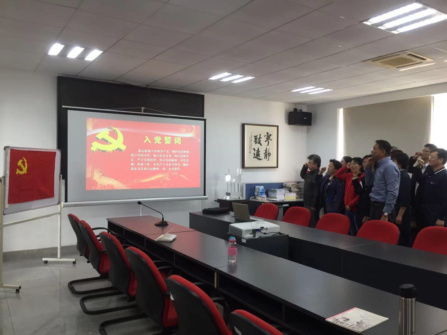 活动第一部分,白菜论坛 四个教工党支部分批次在敏达516开展入党宣誓活动。由各教工党支部书记带领支部党员教师面向党旗,重温入党誓词。