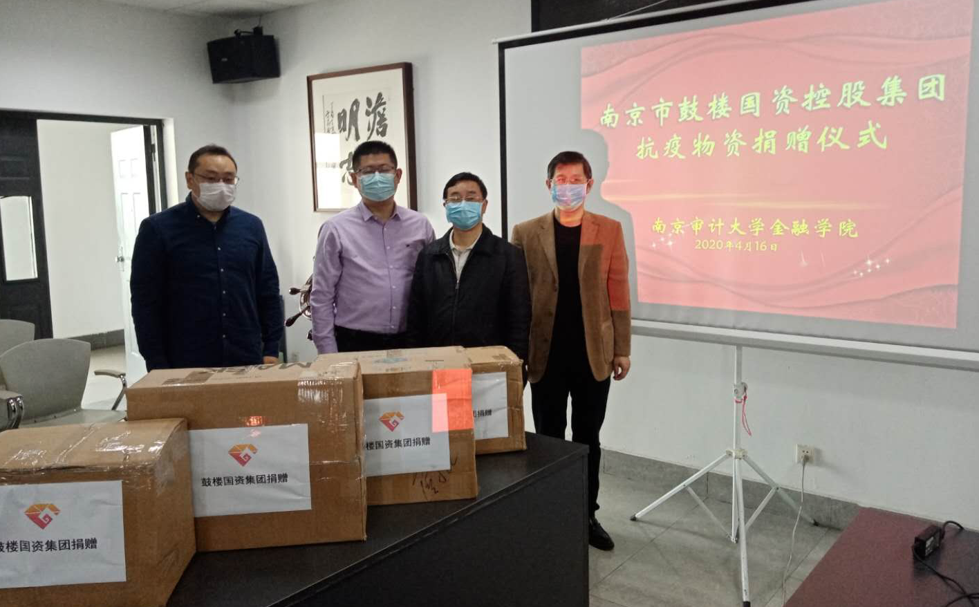 众志成城战疫情,爱心企业在行动。4月16日上午,南京市鼓楼国有资产投资发展控股集团有限公司总经理王韬总经理、单亮监事一行来到白菜论坛 ,代表公司向白菜网 捐赠口罩、消毒液和洗手液等一批防疫物资。白菜网 党总支书记陆凯旋和石岿然副院长参加了捐赠活动。
