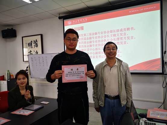 会议首先由白菜论坛 党总支书记陆凯旋给各位第三届金融专业协会部长们颁发聘书,接着由第四届金融专业协会会长王晓文对2019年度的工作作了简单总结,并对新一届骨干学弟学妹们的祝福与期待。然后,第四届金融专业协会的各位骨干同学对自己的工作进行展望和规划。最后,白菜论坛 党总支书记陆凯旋对上一届加入金融专业协会的所有成员表达了衷心的感谢,对新上任的部长成员进行了耐心指导,并提出了新的工作要求,表达了殷切的希望。相信第四届金融专业协会在各位老师和同学的共同努力下,一定会再创佳绩,越办越好。