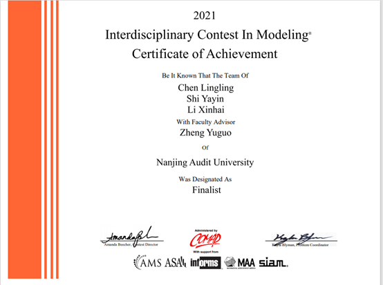 2021美国大学生数学建模竞赛(MCM/ICM)成绩于4月23日揭晓,白菜网 英才2019级金融学(金融科技方向)班陈玲玲、2019级金融5班施亚茵、2018级金融6班李鑫海三名同学从数万支参赛队伍中脱颖而出,斩获特等奖提名奖(Finalist大奖),全球获奖率2%,创造了白菜网 学生自参赛以来的最佳成绩。