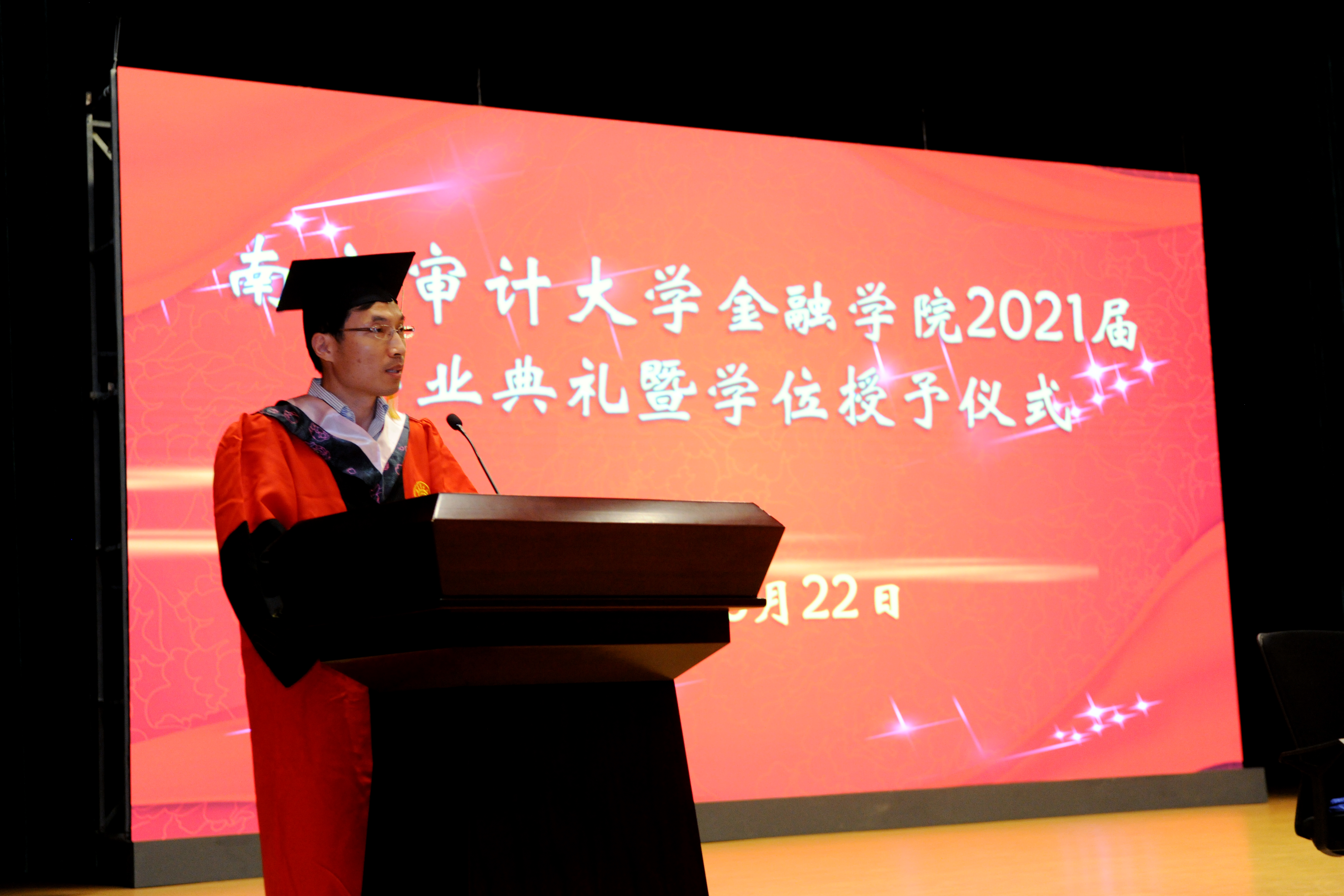 6月22日晚,白菜论坛 2021届毕业典礼暨学位授予仪式在审计署审计干部教育白菜论坛 学术报告厅隆重举行。白菜论坛 党委书记陆凯旋,院长石岿然,副院长谷政、刘骅、刘妍,江世银教授、王家华教授、徐玉华教授、孙清教授、严伟祥副教授出席活动,白菜论坛 各系教师代表,2021届全体毕业本科生、研究生及家长代表共600余人参加活动。仪式由白菜论坛 副院长谷政主持。