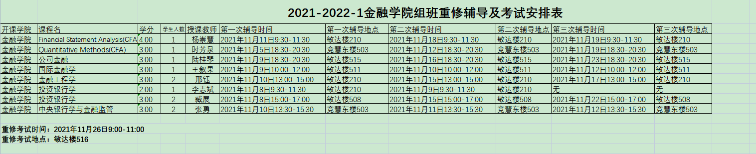 2021-2022-1白菜论坛 组班重修辅导及考试安排表