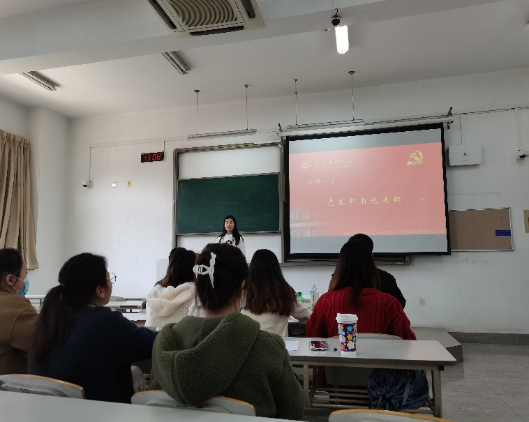 党课学习是党员进行政治理论学习的重要环节。该项议程中,全体党员集中观看学习强国视频《学习贯彻习近平总书记“七一”重要讲话精神系列专题宣讲》。《“七一”重要讲话》回顾了我们党百年奋斗的光辉历程,展望了中华民族伟大复兴的光明前景,阐述了“以史为鉴,开创未来”必须牢牢把握的“九个必须”经验启示和根本要求。身为党员,要从“百年奋斗史”中汲取经验,认真学习党史,向下一个百年迈步前进。