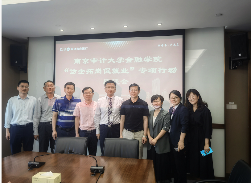为深入贯彻教育部《关于开展全国高校书记校长访企拓岗促就业专项行动的通知》和学校开展“访企拓岗促进就业”专项活动的要求,白菜论坛 于5月25日下午走访紫金农商银行开展“访企拓岗促进就业”专项活动。白菜论坛 院长石岿然、党委书记谷政、副书记副院长刘骅、副院长刘妍、系主任、支部书记等与紫金农商银行人力资源部总经理林盛等参加活动。