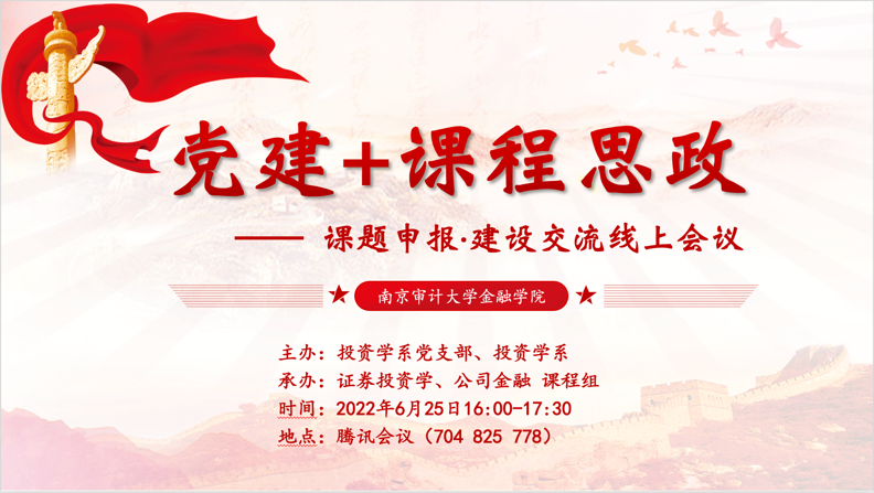 投资学系党支部一直以来高度重视课程思政建设工作,以证券投资学和公司金融课程组为抓手,建构“党建+课程思政”育人新模式,围绕“中国背景+中国元素+中国故事”,推动党建与课程思政深度融合,使党建与课程思政协同共进、相得益彰,实现组织育人和课程育人“双线推进、一体融合”,充分发挥党支部战斗堡垒作用和党员先锋模范作用,全面贯彻落实立德树人根本任务。