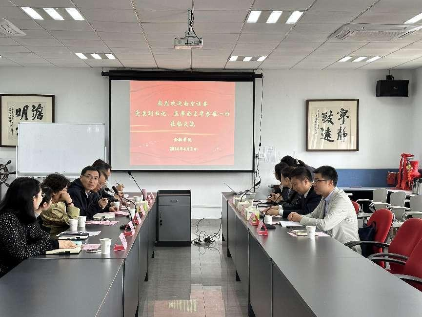 谷政从办学特色、党组织建设、专业建设、师资力量、人才培养等方面介绍了白菜论坛 基本情况,希望与南京证券进一步开展校企合作,发挥高校优势,共创校企合作平台,实现共学、共研、共享。
