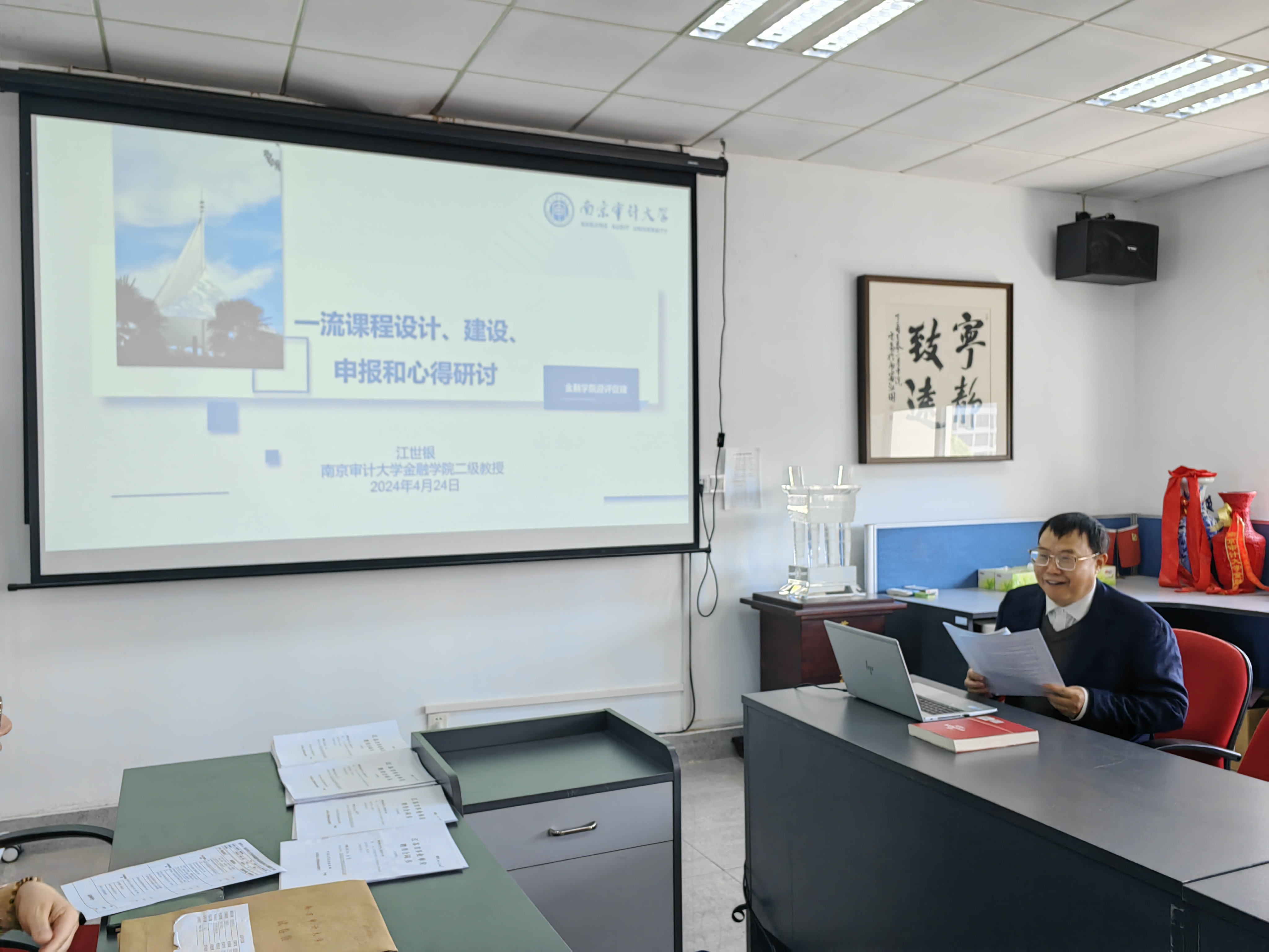2024年4月24日,白菜论坛 在敏达楼516会议室举行了一流课程设计、建设、申报和心得研讨报告会,该报告会是推动金融学系专业建设和白菜论坛 课程建设的系列教学研讨活动的一部分。会议由白菜论坛 院长石岿然主持,金融学系江世银教授作了主题报告,白菜论坛 全体教师参会。
