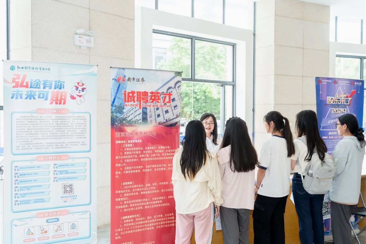 南京证券南京分公司等单位在我校开展招聘活动,现场人头攒动、气氛热烈,为2024届毕业生提供了就业机会。