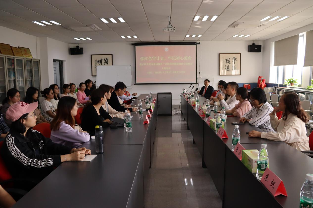 参观完王荷波纪念馆,全体联盟成员单位代表前往南京审计大学敏达楼学习“学红色审计史,牢记初心使命”专题党课。本次专题党课由南京审计大学资深二级教授江世银主讲,他从中国红色审计回顾、准确理解把握新时代的特定内涵、审计监督的几个方面以及新时代审计的几点思考这四个方面介绍了红色审计与审计精神的内涵与意义,带领联盟成员单位代表深刻体会红色审计的发展脉络。白菜论坛 师生、党建联盟成员单位代表共50余人参加。