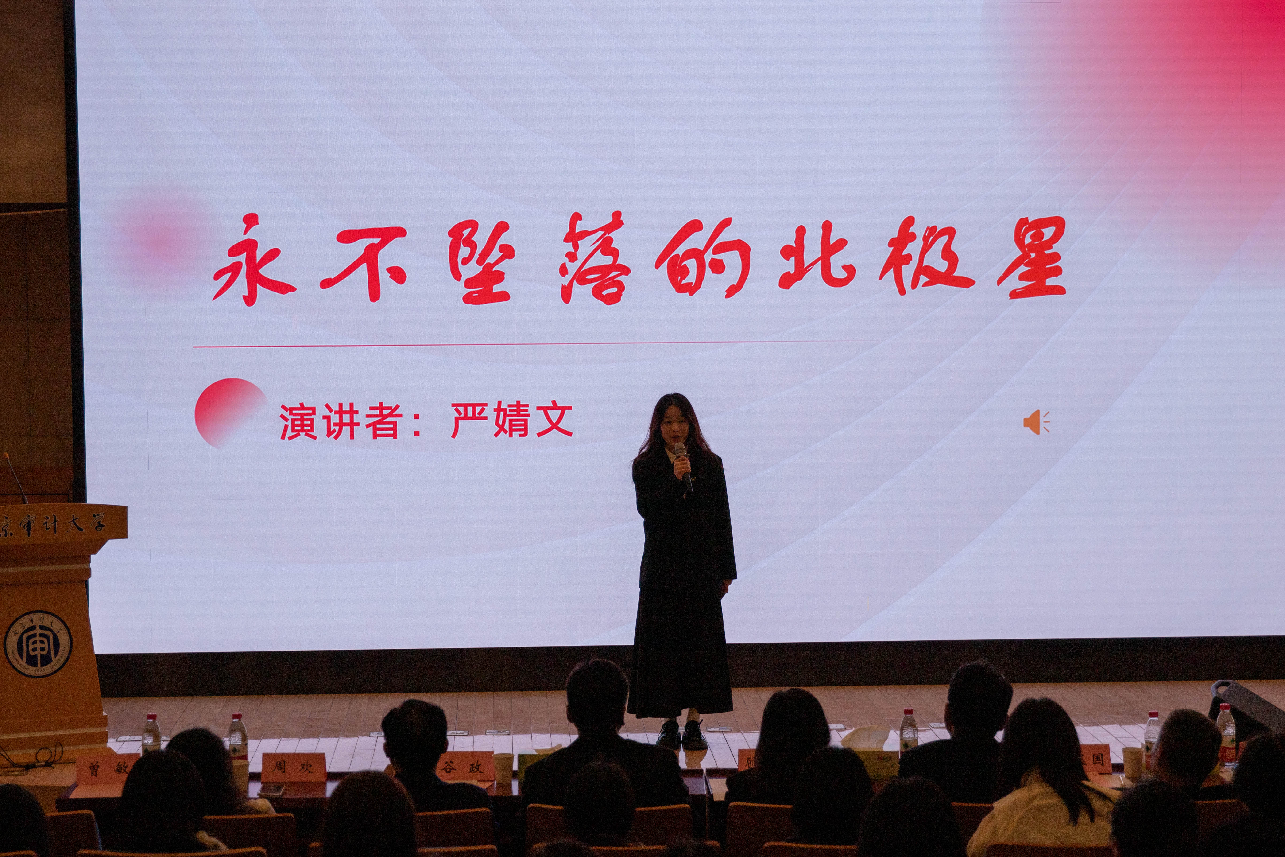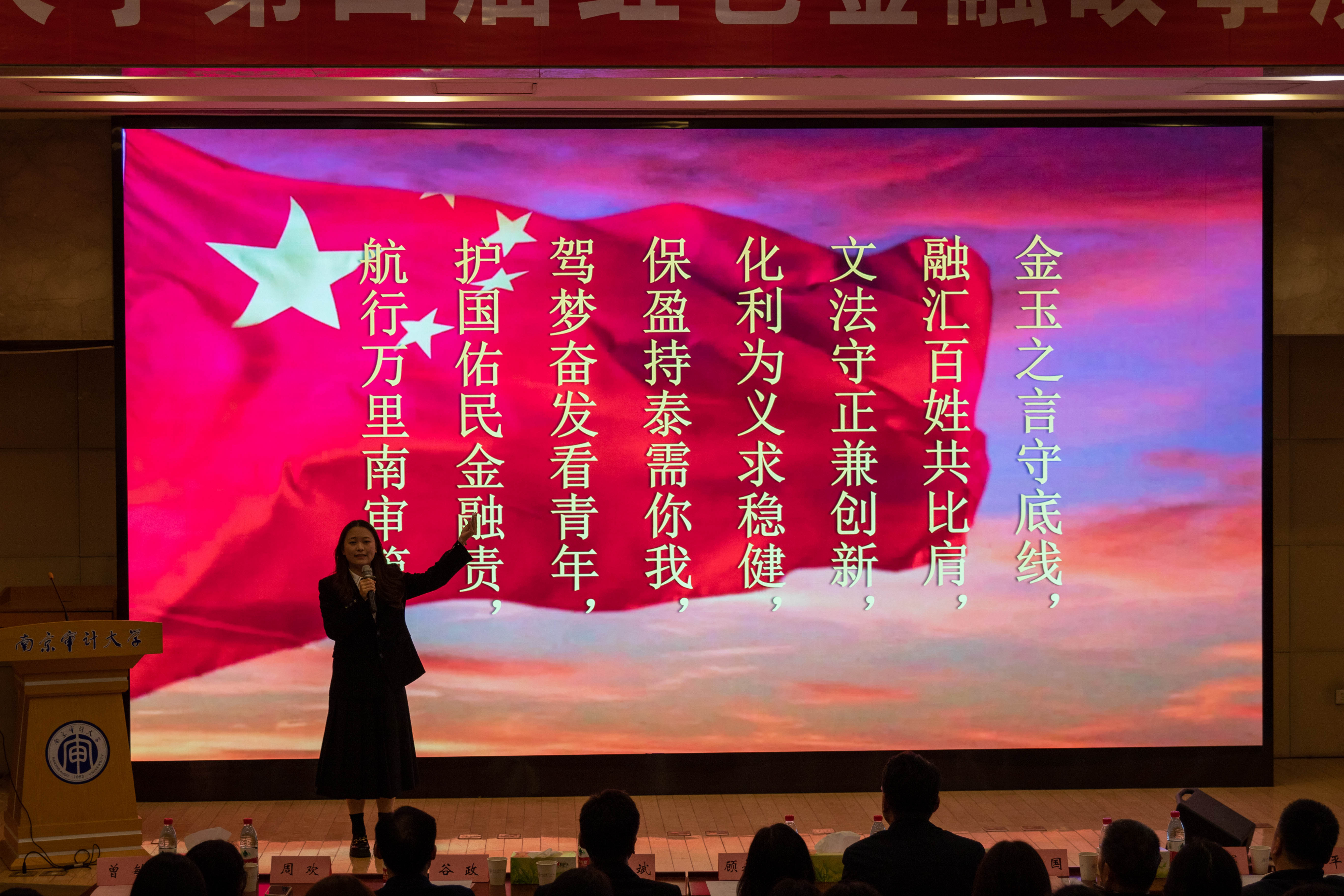 南京审计大学校纪委副书记陈晓斌为本次活动致辞,对参赛选手表示了热烈的欢迎,并对活动的顺利举行表示祝贺。他充分肯定了此次红色金融故事演讲比赛的意义和内涵,认为这不仅是南审学子对新中国成立75周年的最好献礼,也是对新时代青年人的一次深刻教育。他强调,作为新时代的南审人,要牢记习近平总书记的嘱托,不断强化自我修炼、自我约束、自我塑造,自觉在廉洁自律上做出南审人的表率。