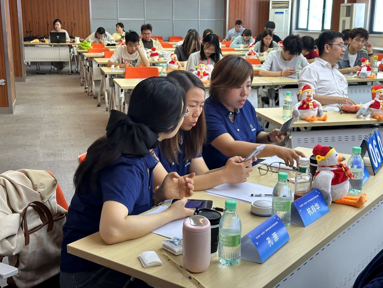 在主持人介绍完比赛流程、丰厚奖品,以及“快乐寻宝”“冠军竞猜”等福利活动后,竞赛正式拉开帷幕。必答题环节,选手们冷静思考、从容作答;抢答题环节,大家眼疾手快,凭借扎实知识迅速抢答;案例分析题环节,各小组深入讨论,代表陈述逻辑严谨、专业全面;风险挑战题环节,选手们勇敢抉择,向高分发起冲击。各环节扣人心弦,现场高潮迭起。