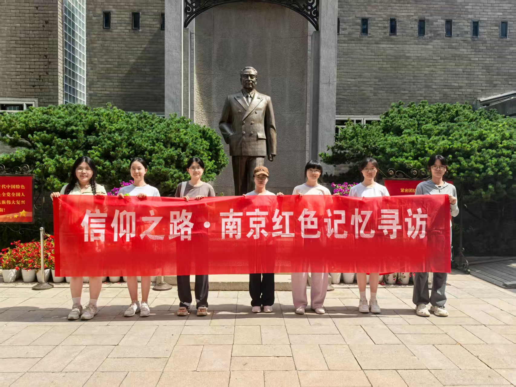 7月16日至7月20日开展实地调研与历史考证等工作,近距离感受了历史的厚重感。期间,小队成员们参观了国共谈判史料陈列馆、周恩来图书馆和中共代表团成员在梅园的旧居,并在周恩来铜像前合照。