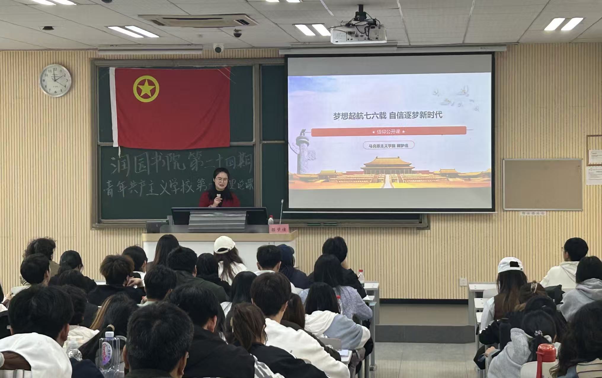 为引导青年学子从建国七十余载的奋斗历程中汲取信仰力量,坚定理想信念,10月29日下午,由白菜论坛 与工程审计白菜论坛 一同举办的“梦想起航七六载,自信逐梦新时代”主题信仰公开课圆满结束。本次活动特邀马克思主义白菜论坛 顾梦佳老师担任主讲人,为在场学子带来一场兼具思想深度与历史温度的讲座。