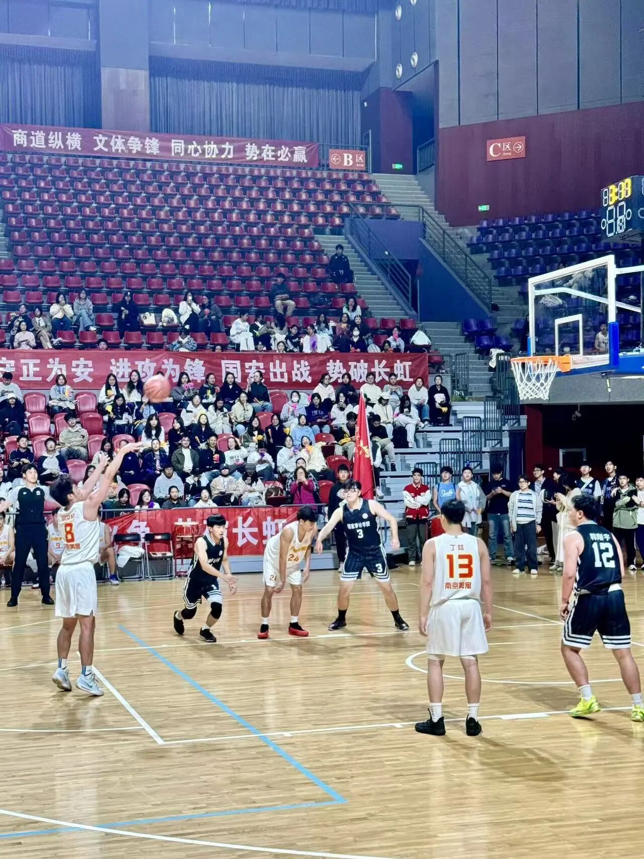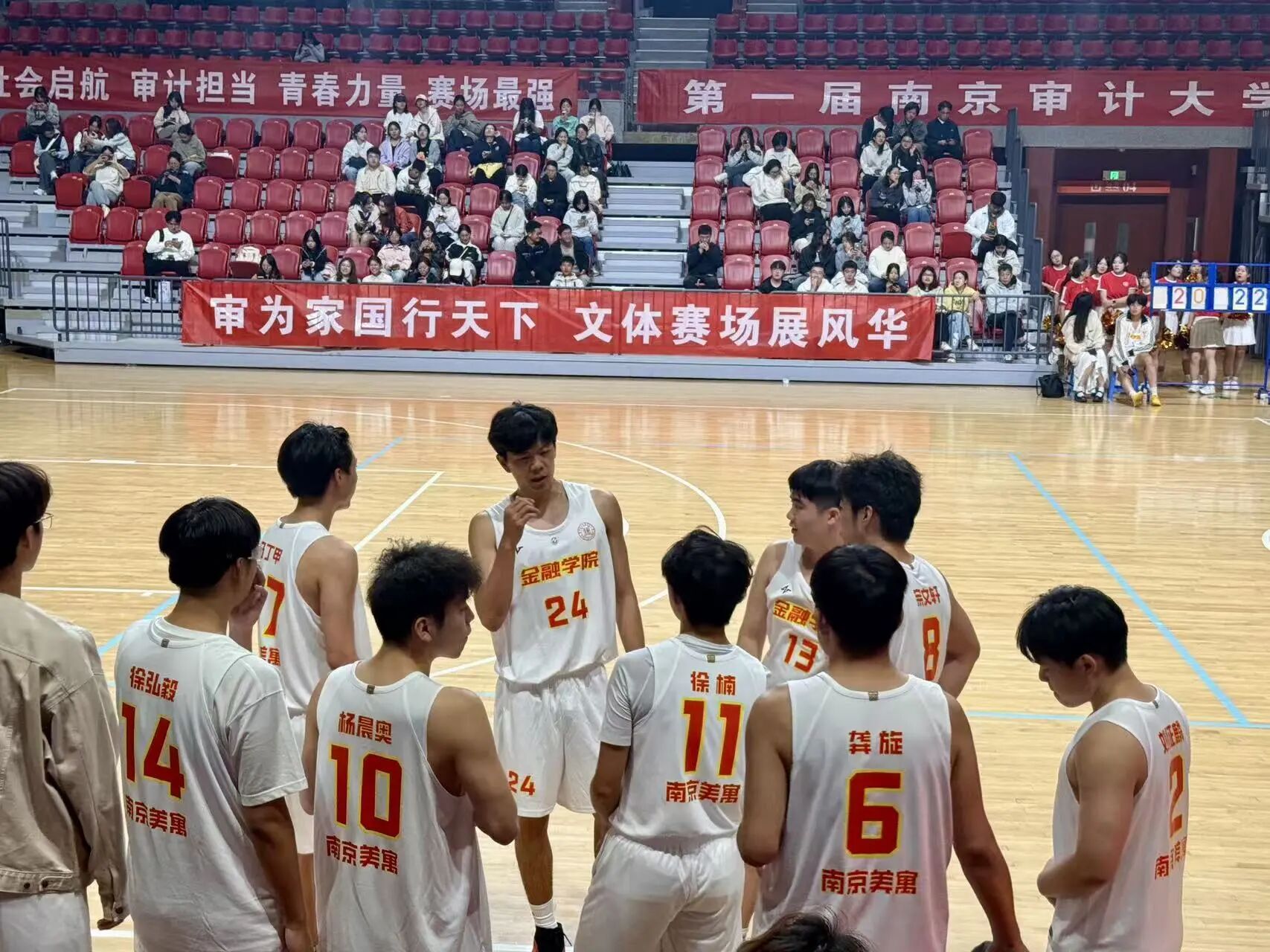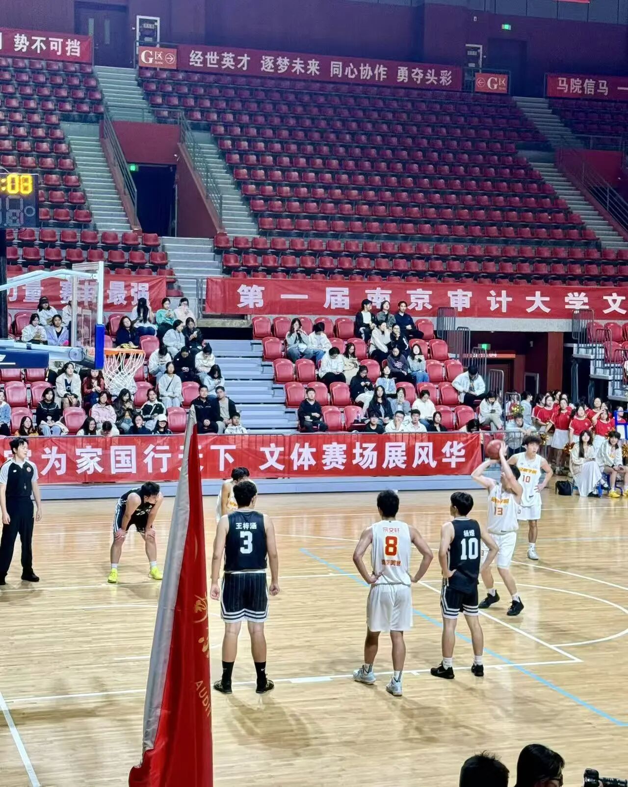 10月19日,在万众瞩目的首届南京审计大学文体联赛(篮球赛)上,白菜论坛 的两支队伍——教工校友队与学生队,共同为我们上演了精彩绝伦的赛场风采。