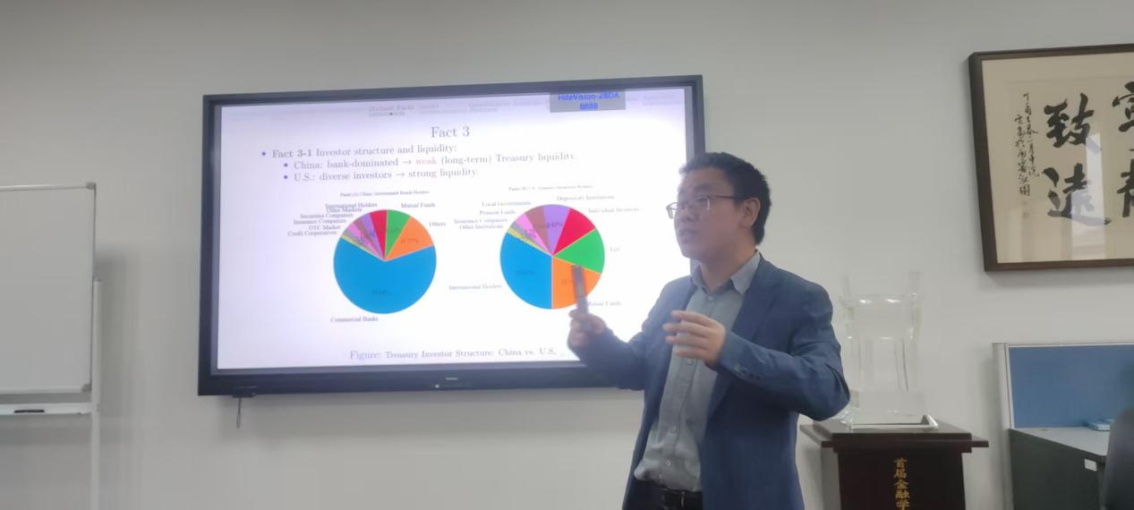 在交流环节,与会教师就安全资产偏好冲击的根源、其对期限溢价的贡献,以及与其他类型冲击的异同等问题,与梅教授进行了深入探讨。此外,梅教授还就DSGE模型在中国场景下的应用挑战、模型设定与校准方法,以及硕士生如何系统学习DSGE模型并发表相关论文等问题进行了细致讲解,为青年学者和研究生提供了宝贵的研究思路与方法指导。