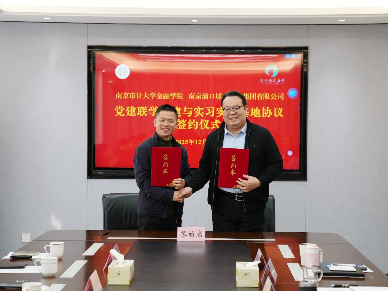 江北新区浦口城建集团深耕市政基础设施建设、水资源开发利用、商业投资运营等领域,以“党建+业务”双融双促模式打造特色发展平台,同时构建了覆盖人才规划、人员培养、考核激励的全链条人力资源体系。白菜论坛 秉持“金融立本、德胜天下”的育人理念,聚焦应用型复合型金融人才培养,拥有金融学、信用管理等国家级一流本科专业及全国首创的“金融审计”专业,课程体系科学且优质。此次签约,标志着双方在党建共建、人才培养、业务交流等领域的合作迈入实质性阶段。