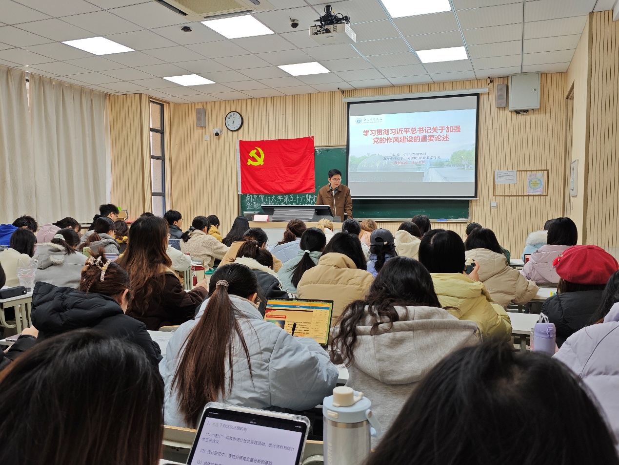 11月25日,本期分党校第五次理论党课于文济楼109顺利开讲。南京审计大学纪检监察白菜论坛 院长助理池通以“学习贯彻习近平总书记关于加强党的作风建设的重要论述”为主题进行授课。课程以党史发展为脉络,系统梳理了党的作风建设的历史经验,结合不同时期的典型案例,深入总结了作风建设的实践启示。立足新时代新征程,池通进一步阐释了加强党的作风建设的深远意义,强调其在推进党的建设与国家事业发展中的关键作用。此外,他还围绕作风建设常态化长效化的实践路径展开探讨,结合高校党建工作实际与学生党员特点,提出了具有指导性和可操作性的具体建议,引导学员深刻把握作风建设持之以恒、久久为功的重要要求。