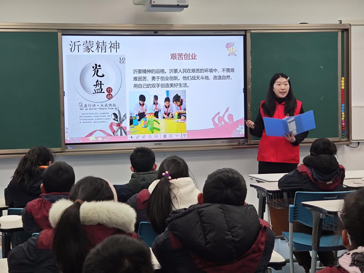 符贺荃还进一步引导孩子们思考精神的延续:“今天的沂蒙人民如何建设家乡?”“未来的我们可以做什么?”从历史到现实,再到未来,红色精神的传承脉络在思考中逐渐清晰。